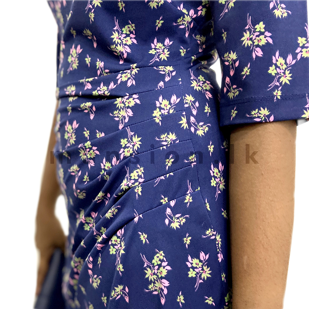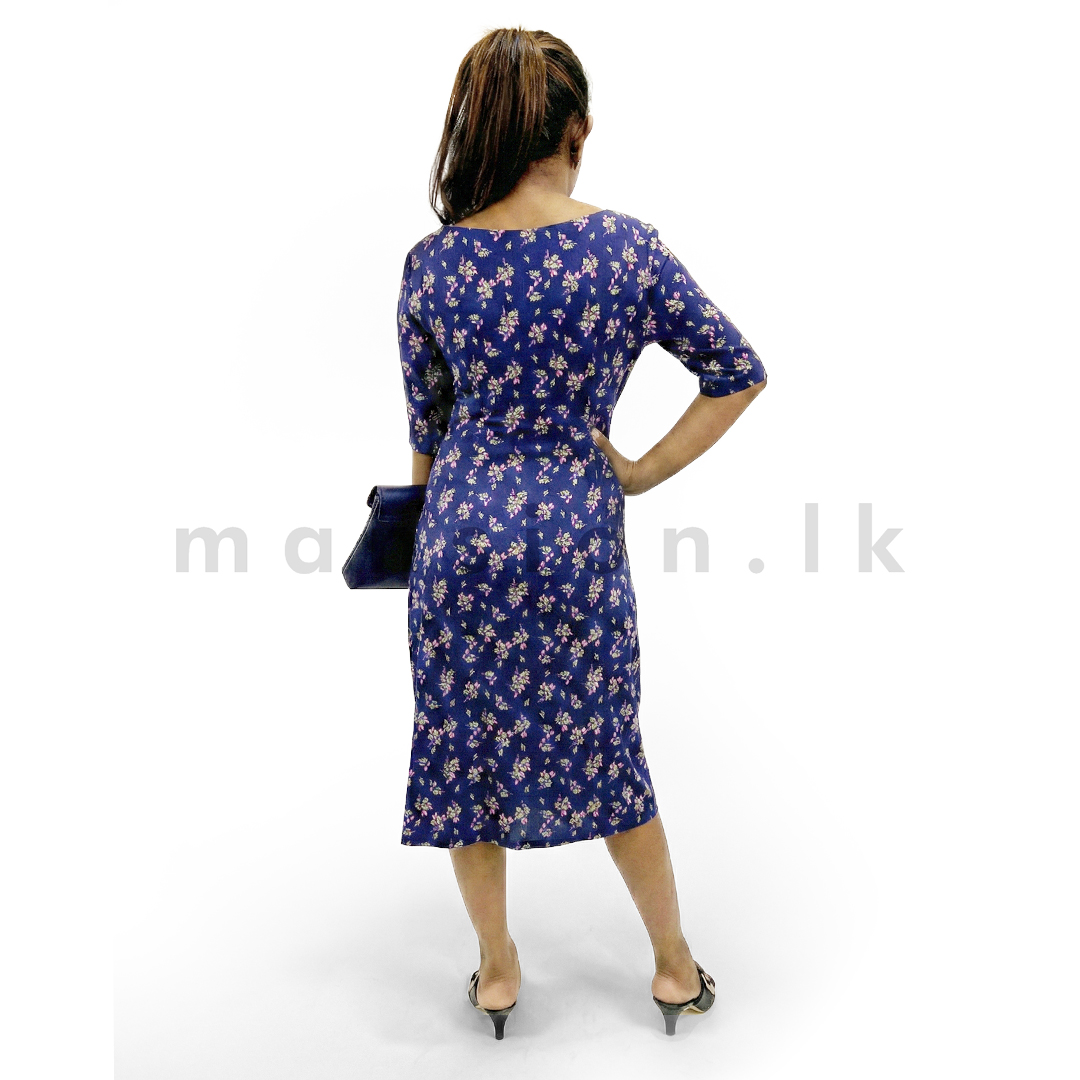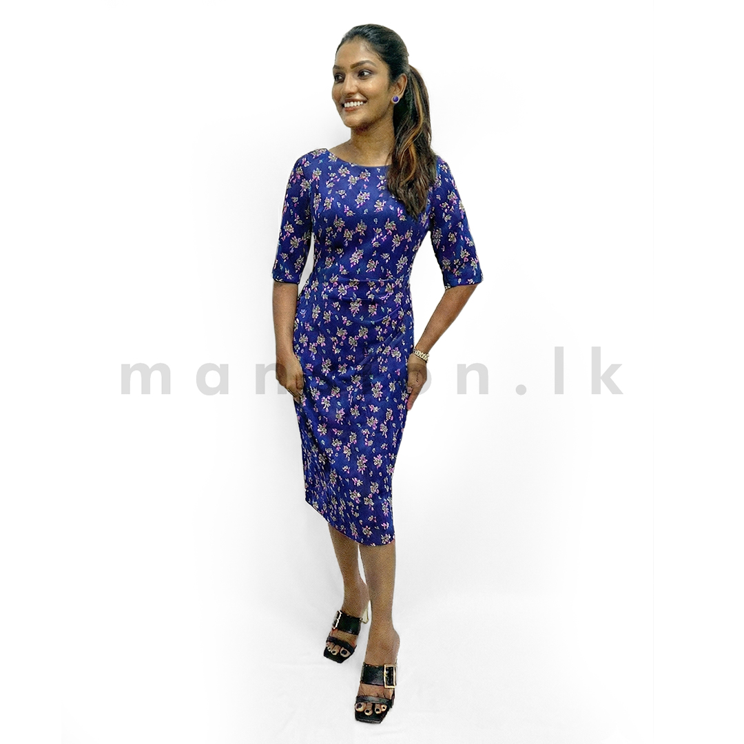 - Chic fitted midi dress in rich blue floral print