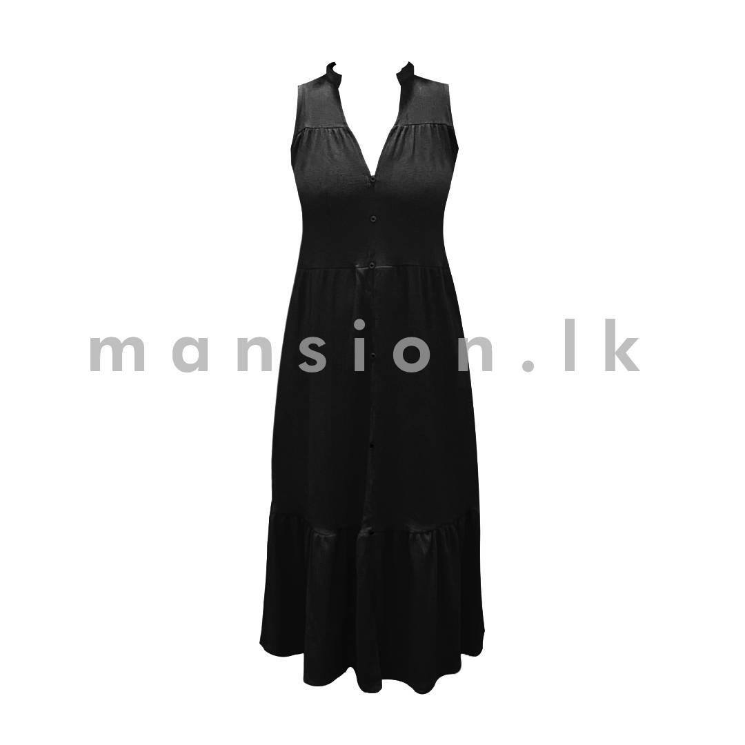 Bottom Frill Sleeveless Dress – Black