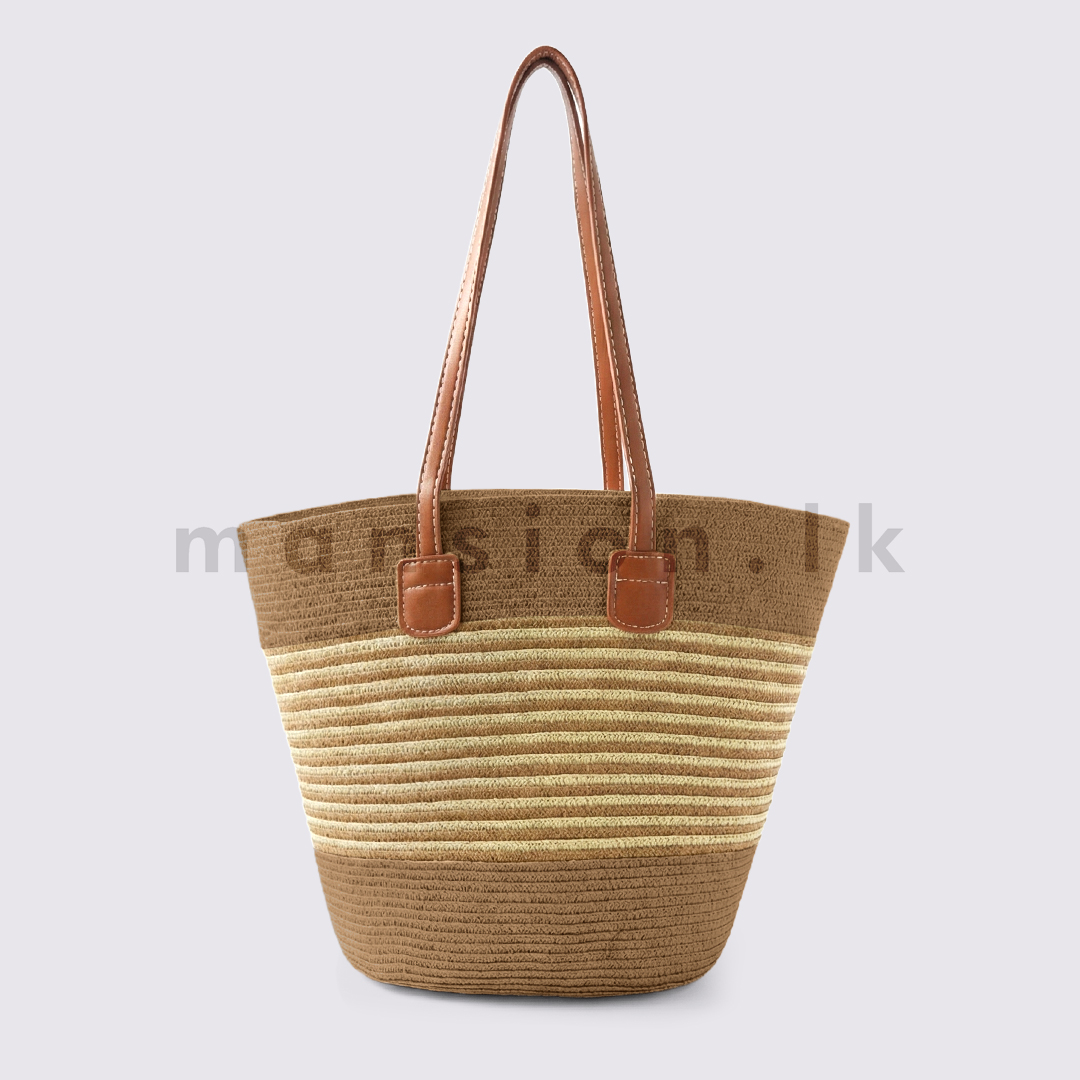Coastal Straw Tote – Thin Stripes