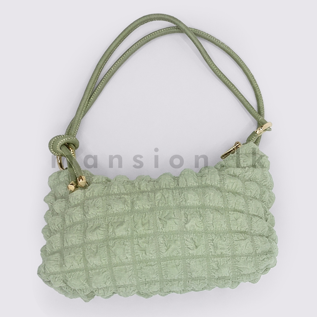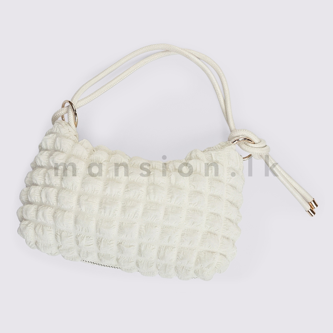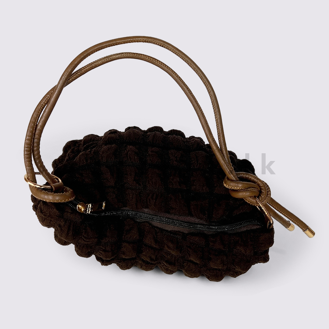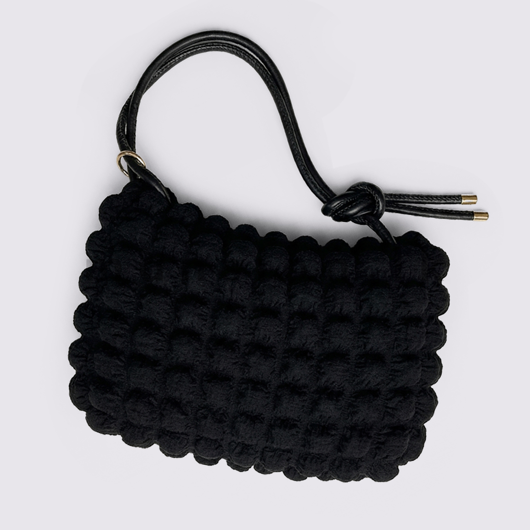 - Trendy mini shoulder bag with a unique popcorn-textured fabric