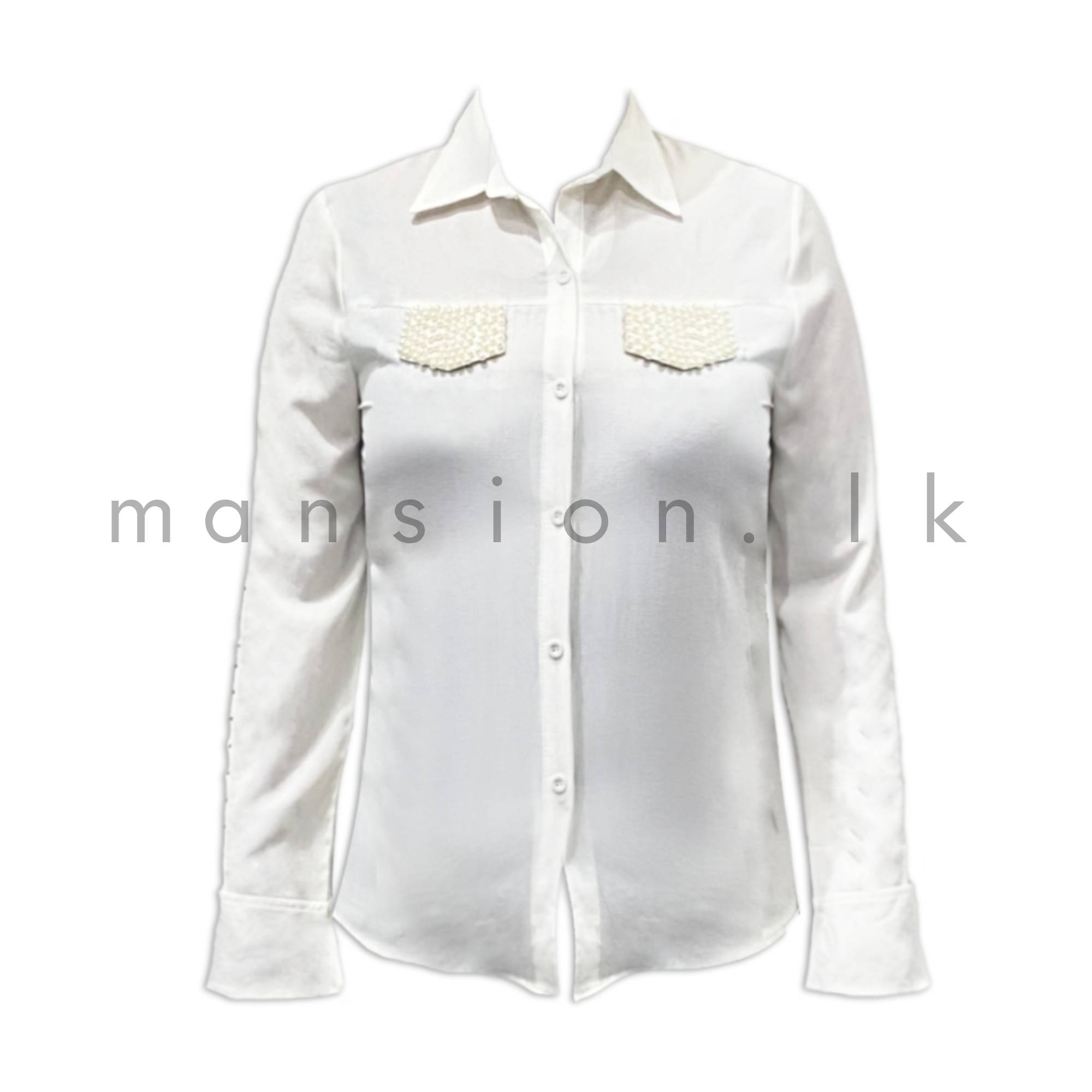 - Off white pearl embroidered chest flap pockets.