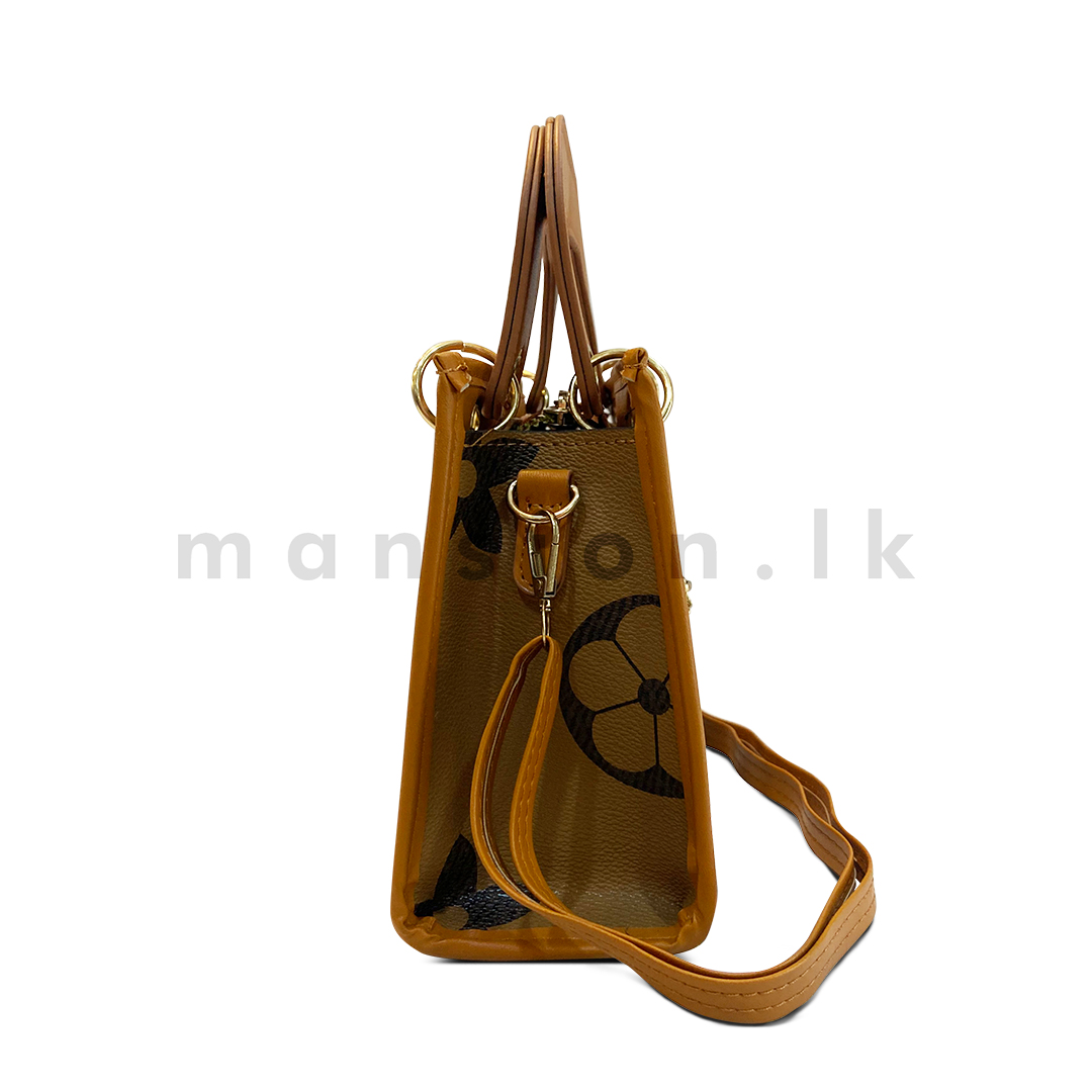 - Gold-tone hardware with a front decorative emblem for added elegance
