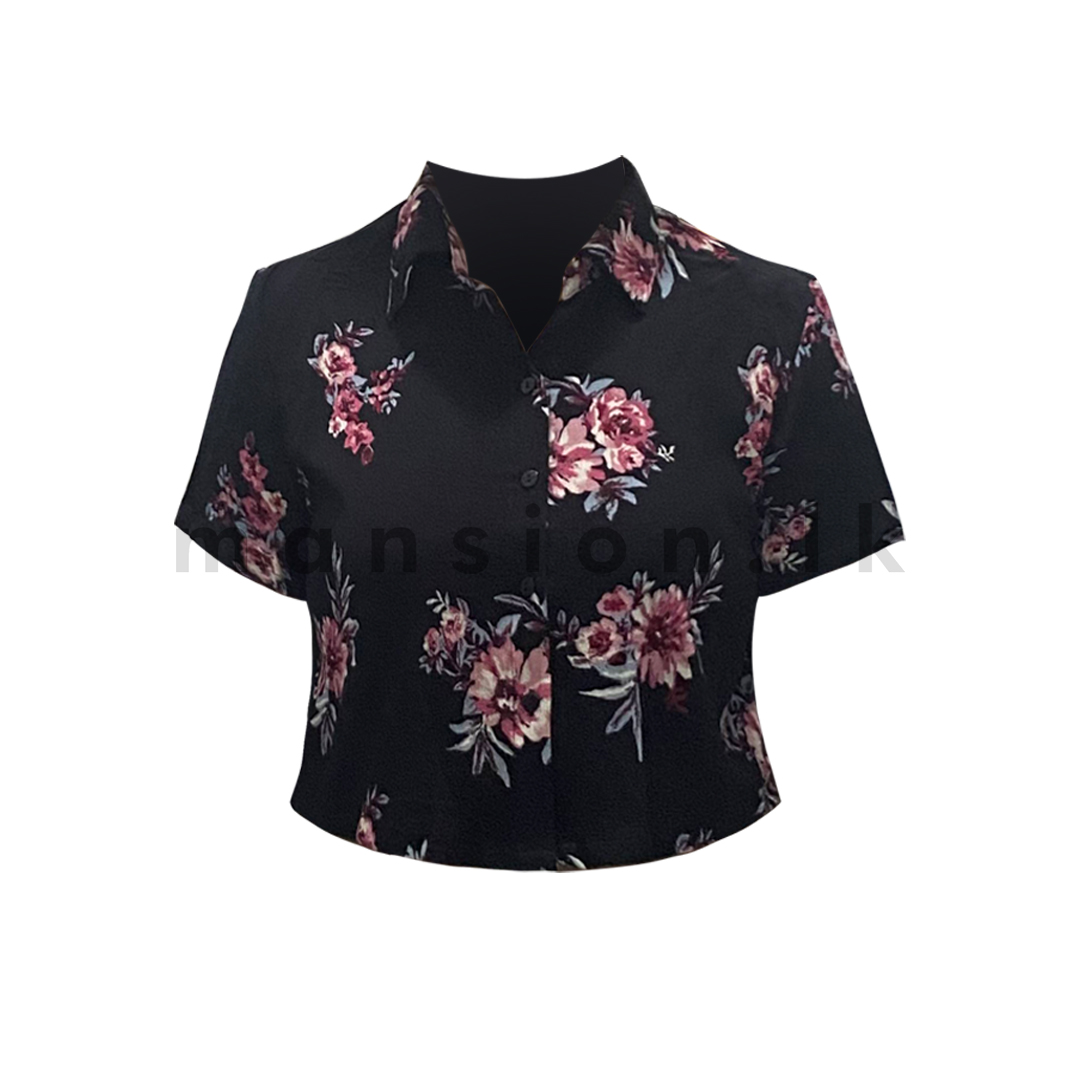 Floral Crop Shirt with Pants – Pink