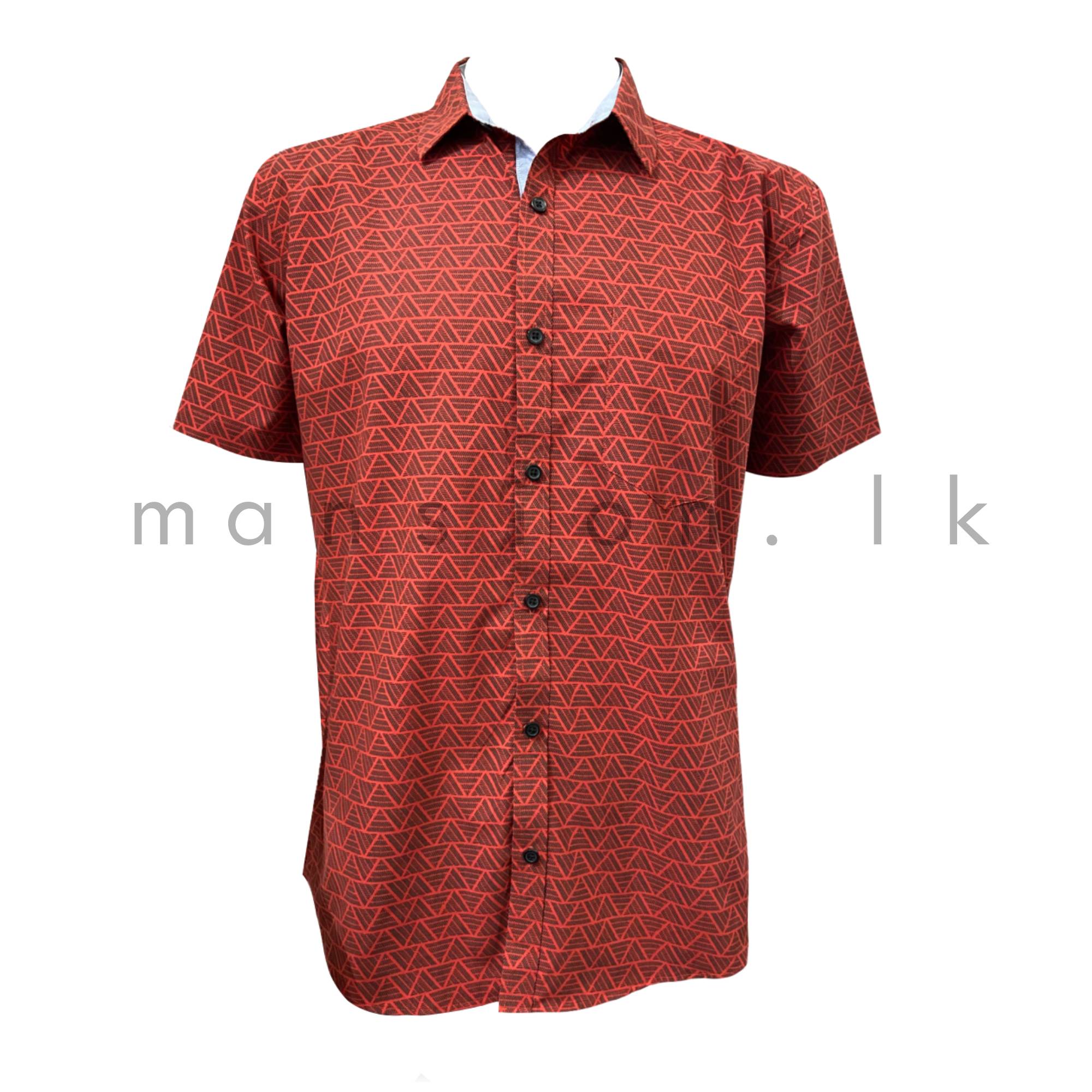 Geometric Printed Short Sleeve Shirt – Red