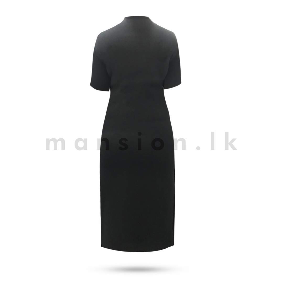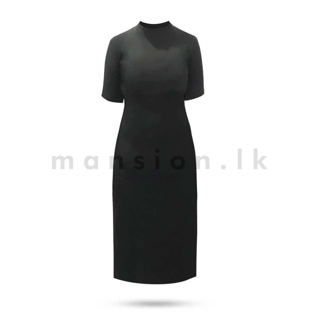 High Neck Bodycon Plain Dress – Black