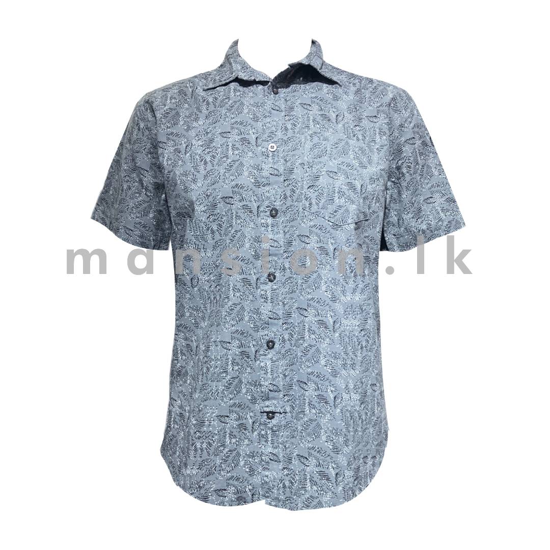 Leaf Sketch Printed Short Sleeve Shirt – Grey