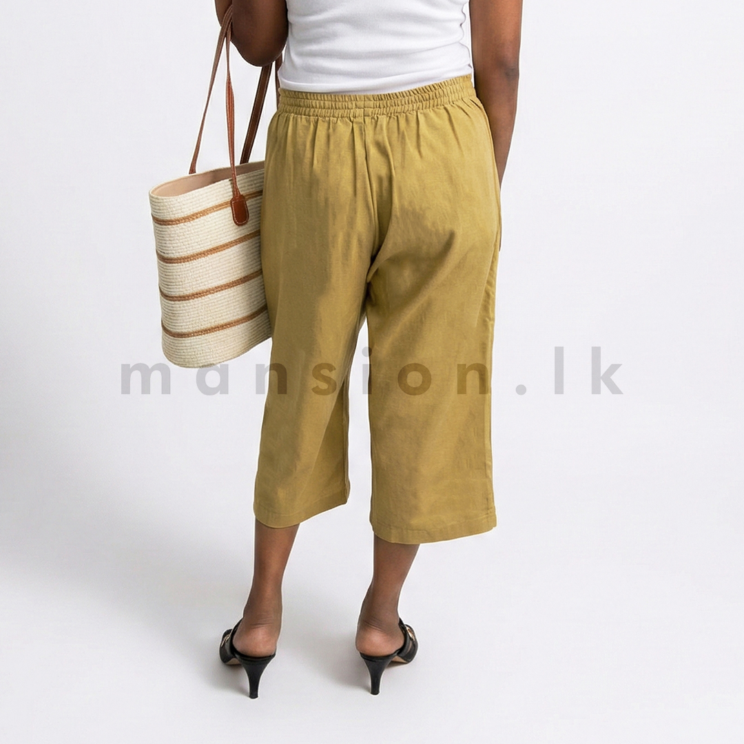 - Elegant high-waisted culottes pants in a warm mustard shade