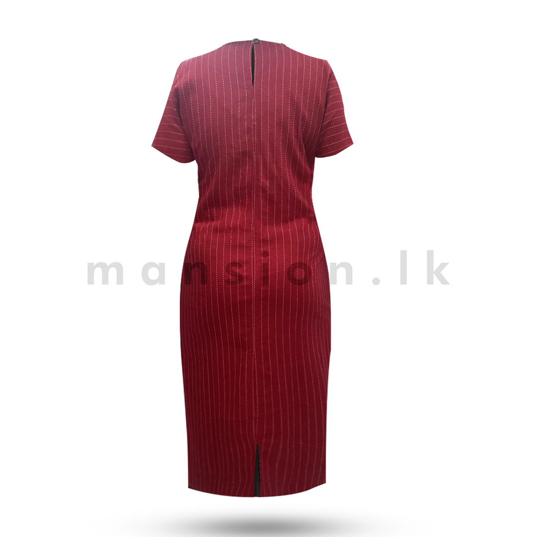 Linen Midi Dress – Red Stripes