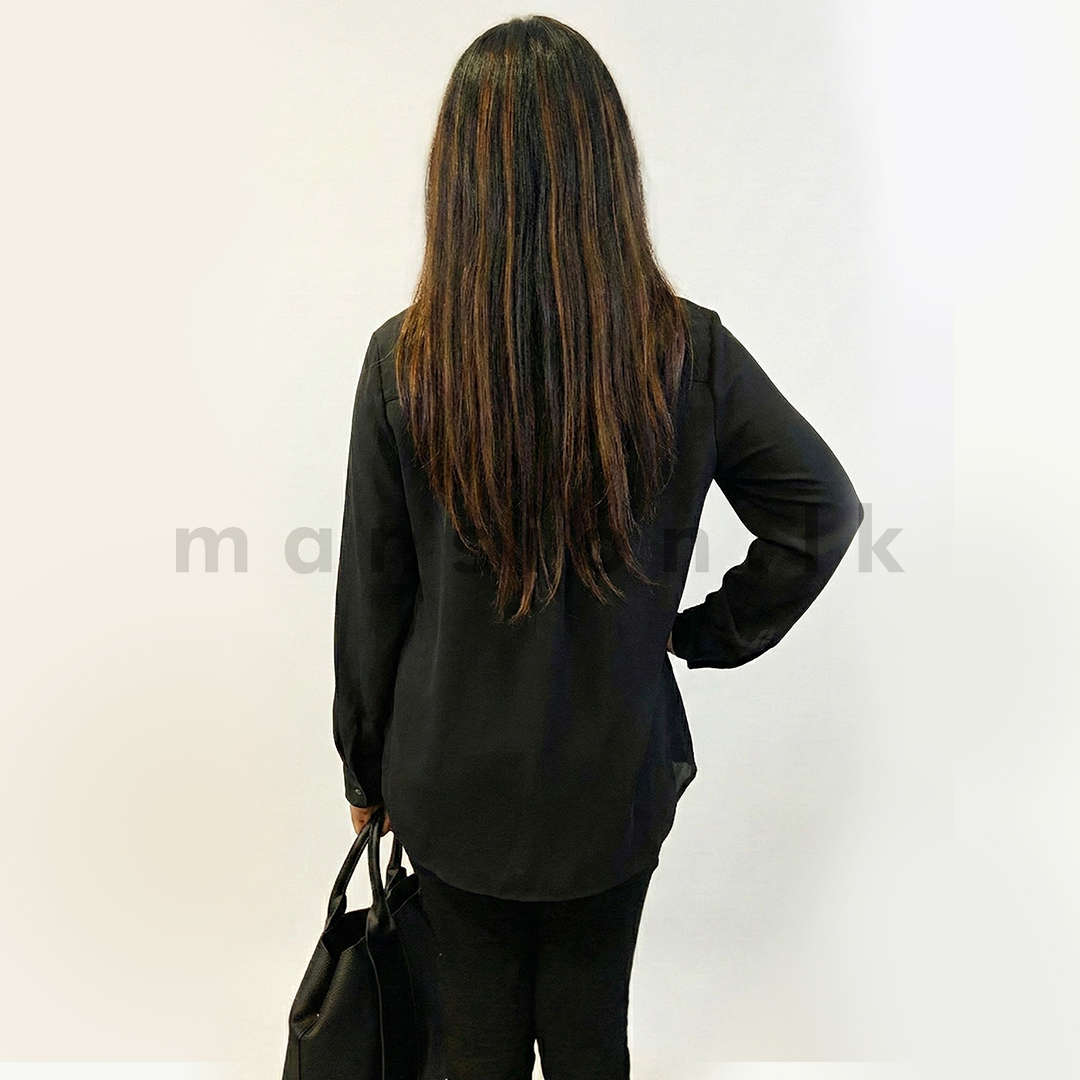 - Long sleeves with a slightly gathered cuff, offering a stylish yet comfortable look.