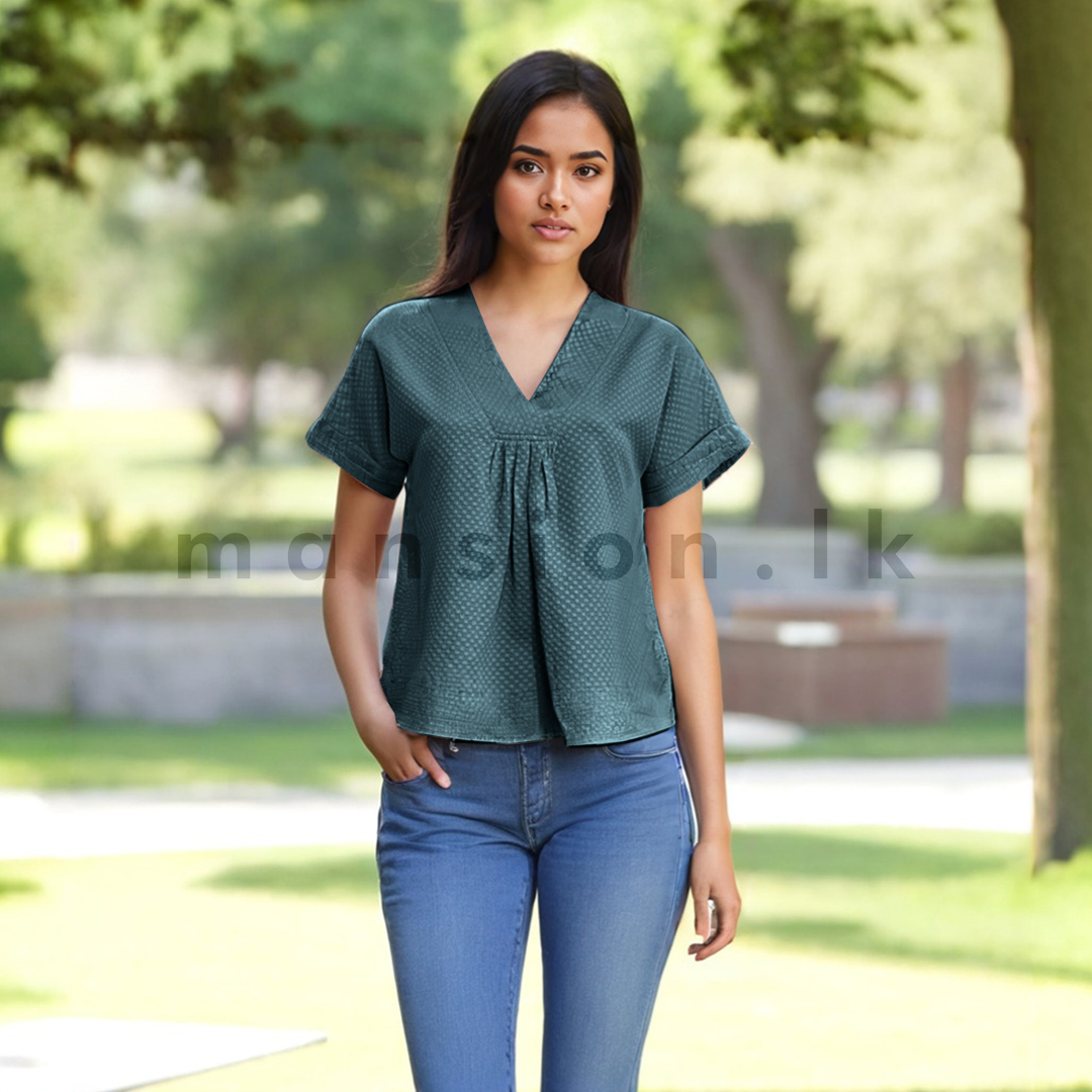 - V neckline with pleat detail