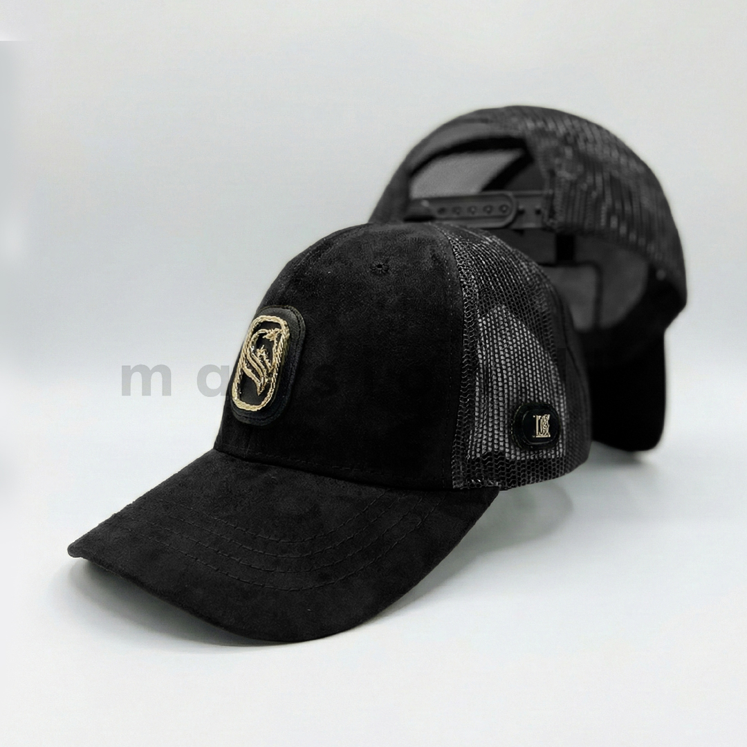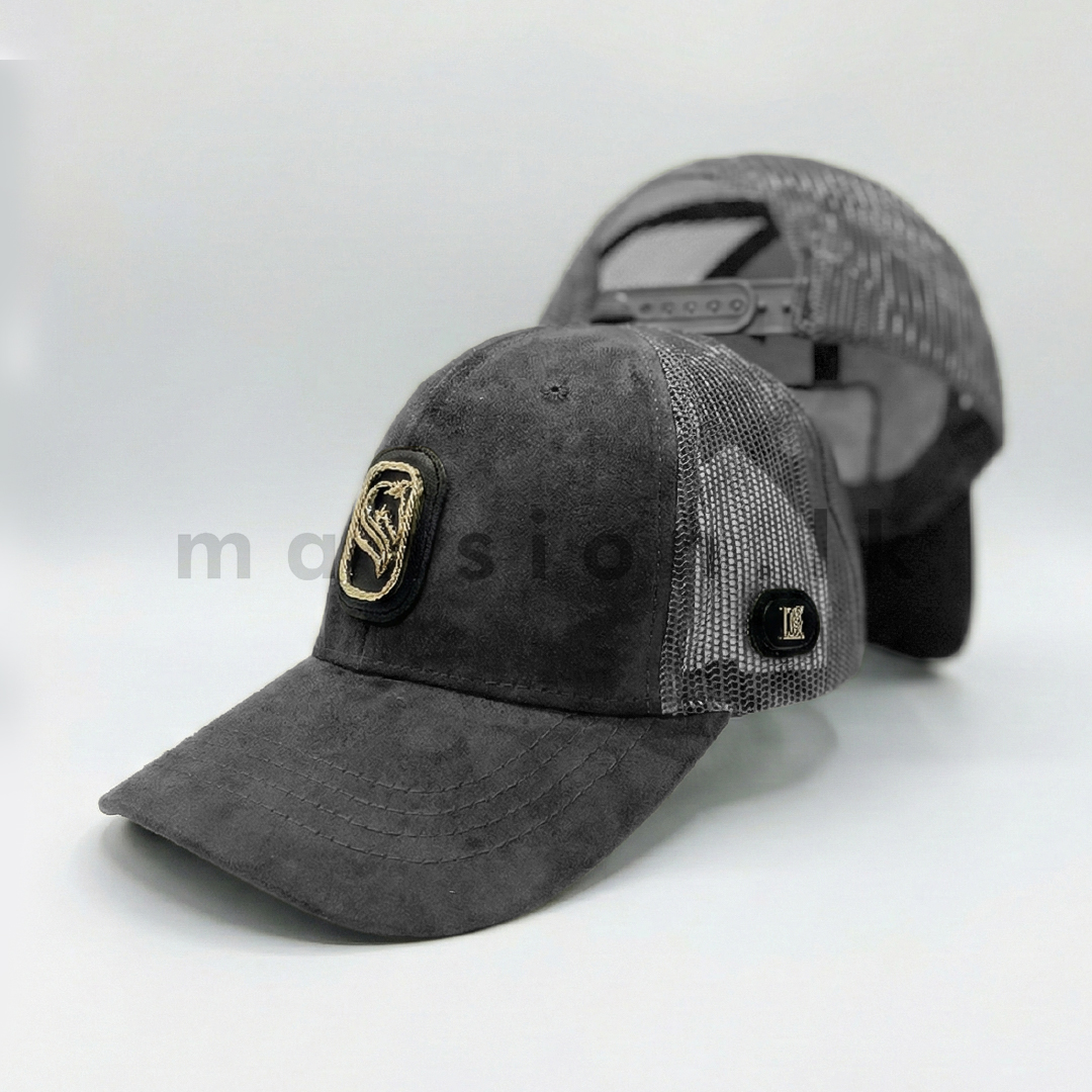 - Soft suede-finish fabric on the front and brim for a luxe feel