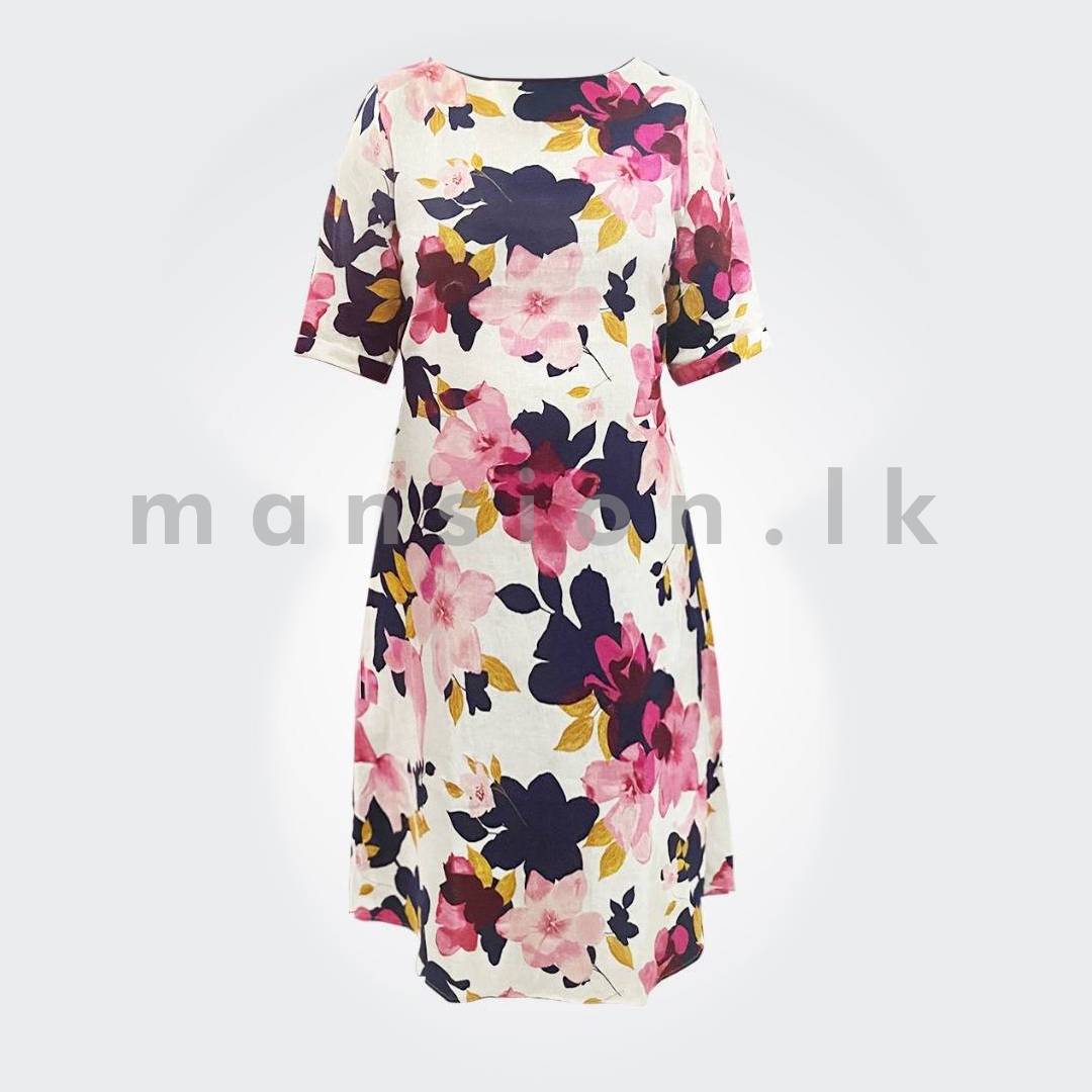 Printed Linen Dress – Magenta Floral