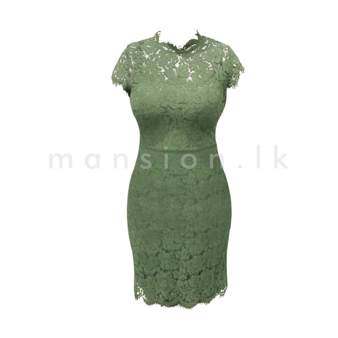 Short Sleeve Midi Lace Dress – Green