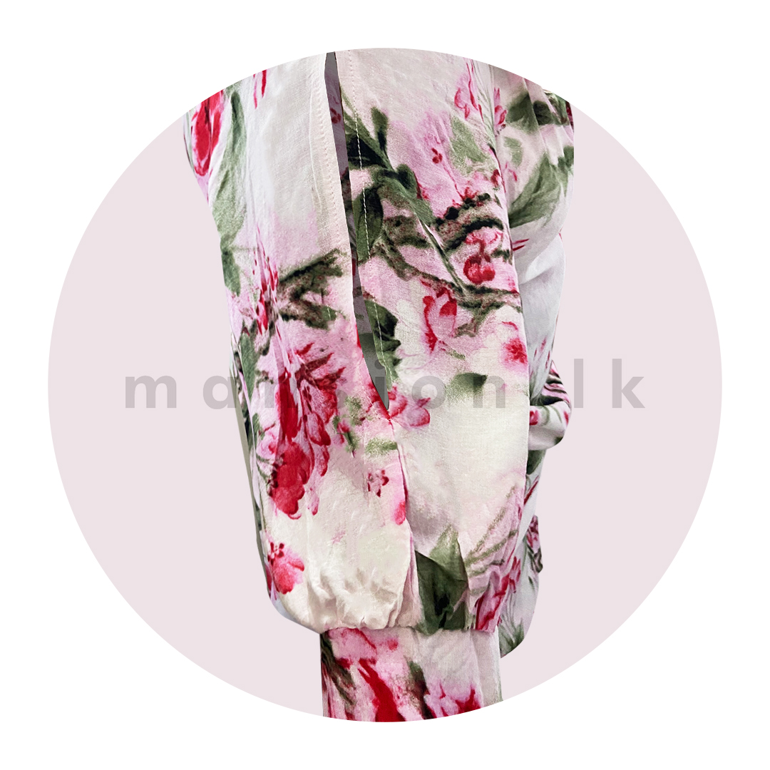 - Elbow length puff sleeves with slits