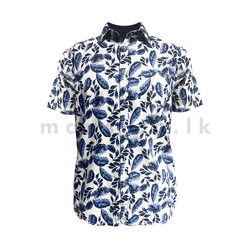 Denim & Flower Printed Shirt – Royal Blue